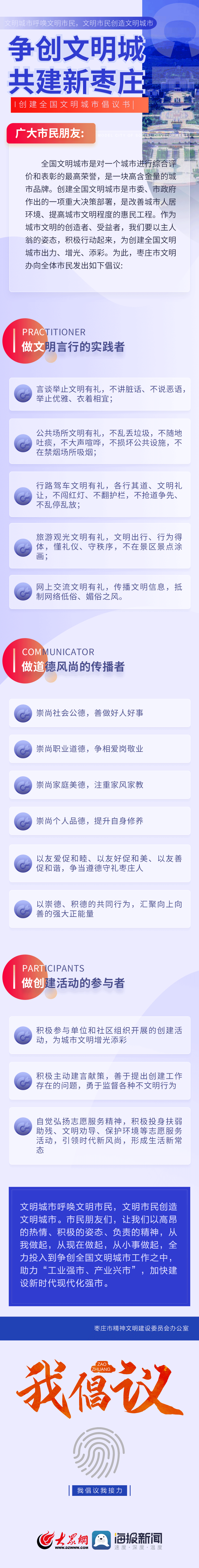 爭創(chuàng)文明城 共建新棗莊——創(chuàng)建全國文明城市倡議書