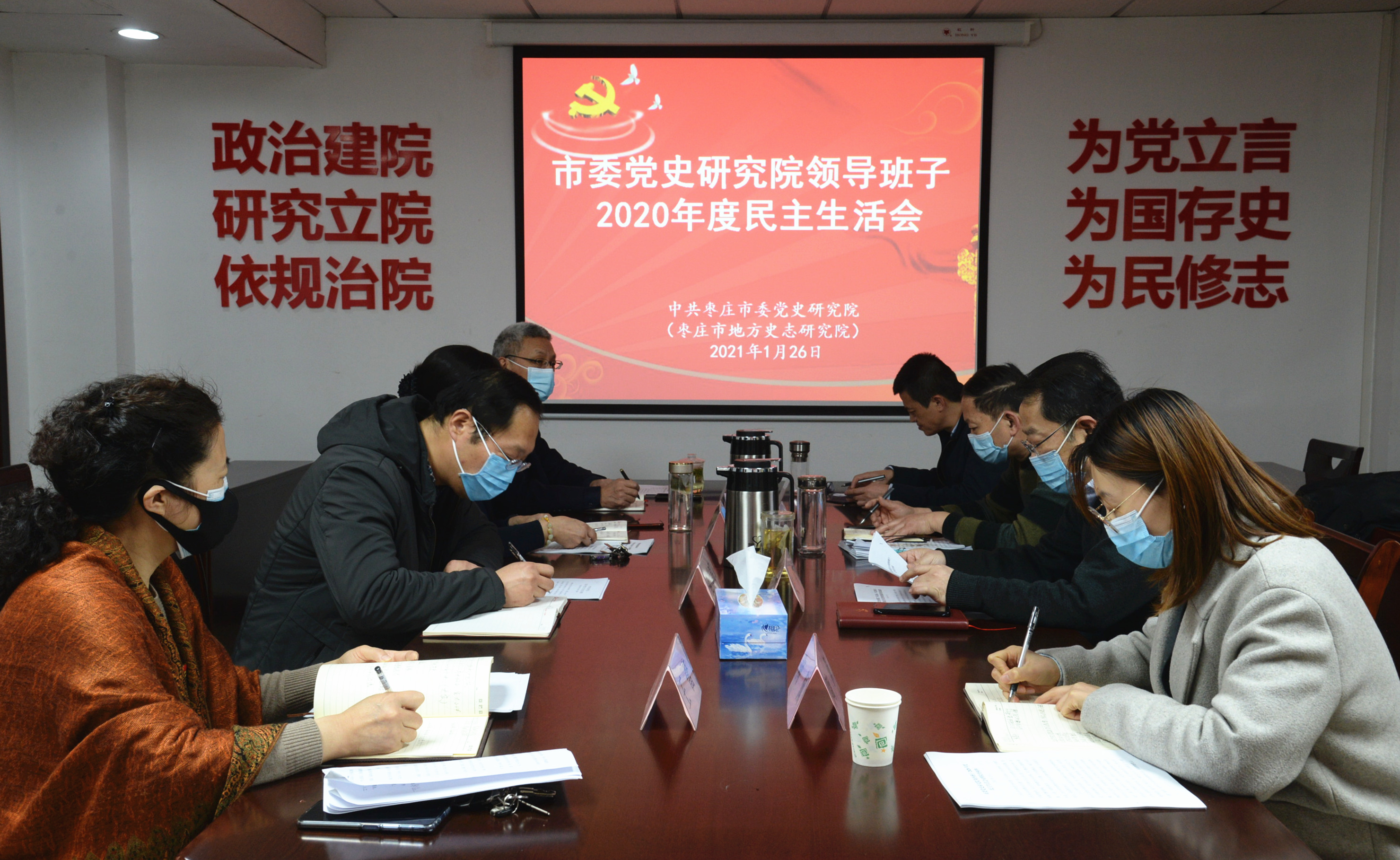 2021年1月26日上午,市委黨史研究院領導班子召開2020年度民主生活會。市委黨史研究院院長安鋒,副院長、三級調(diào)研員范偉明,副院長劉俊俠,王蕾,張濤參加會議,安鋒同志主持會議。市紀委市監(jiān)委派駐第二紀檢監(jiān)察組副組長、四級調(diào)研員劉寧,市紀委市監(jiān)委派駐第二紀檢監(jiān)察組四級主任科員趙聯(lián)峰,市委組織部高層次人才服務中心工作人員陶佩到會指導。