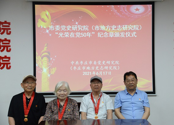 為慶祝中國共產(chǎn)黨成立100周年,6月17日,市委黨史研究院機(jī)關(guān)黨支部召開全體黨員大會,舉行“光榮在黨50年”紀(jì)念章頒發(fā)儀式。