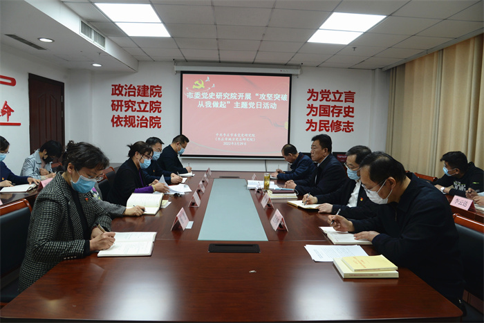 3月29日,市委黨史研究院召開全體黨員會(huì)議,開展“攻堅(jiān)突破、從我做起”主題黨日活動(dòng),市委黨史研究院院長、機(jī)關(guān)黨支部書記張思春主持并講話,市委黨史研究院機(jī)關(guān)黨支部全體黨員參加活動(dòng)。