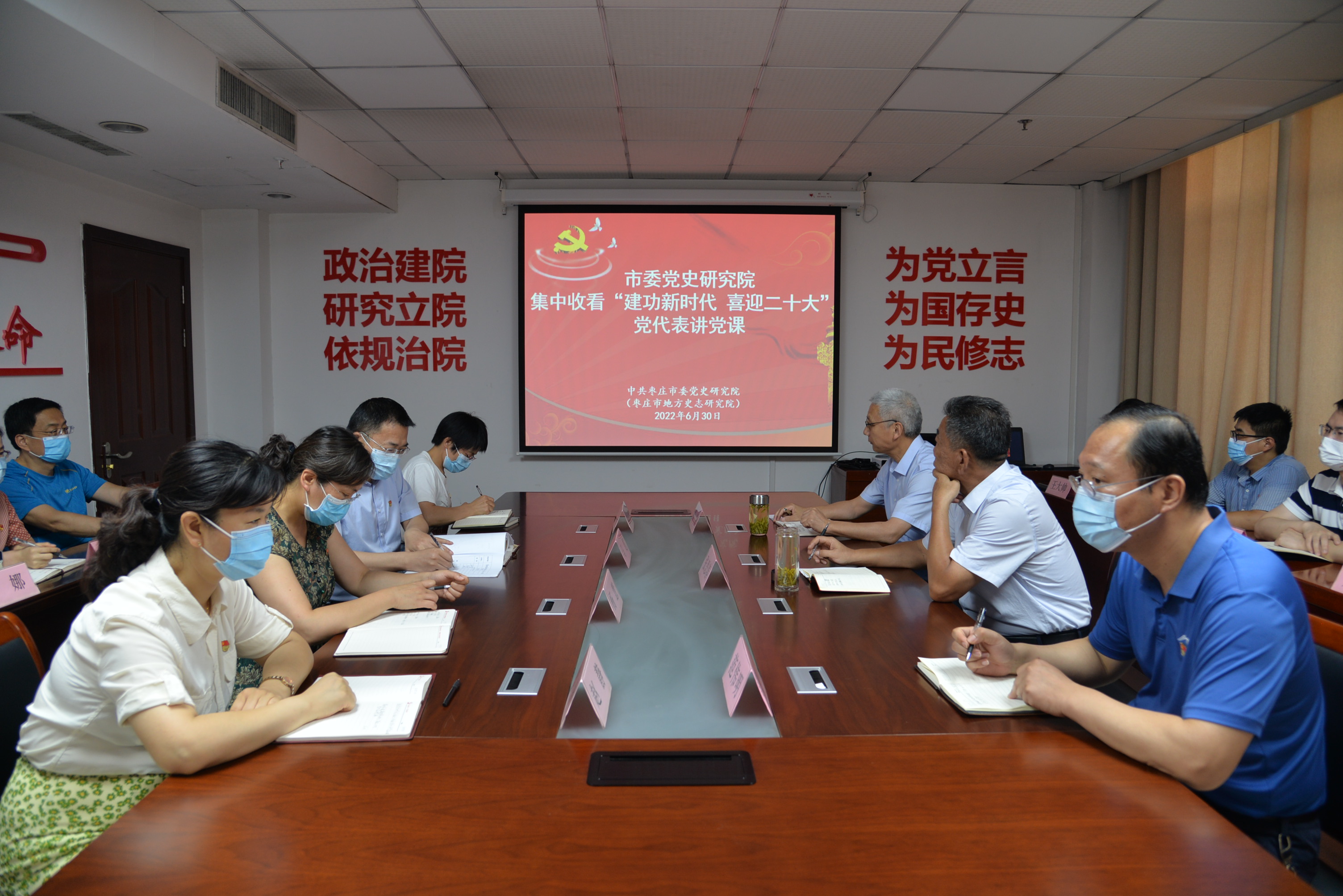 張思春同志強(qiáng)調(diào),今年是中國共產(chǎn)黨成立101周年,也是黨的二十大召開之年。全院黨員干部要解放思想再出發(fā)、勇立潮頭再發(fā)力、轉(zhuǎn)變作風(fēng)再加壓,自覺擔(dān)負(fù)起“為黨立言、為國存史、為民修志”的時(shí)代使命,全力推動(dòng)棗莊黨史史志工作“走在前、開新局”,積極融入到建設(shè)社會(huì)主義現(xiàn)代化強(qiáng)市的新征程中,以優(yōu)異成績向慶祝建黨101周年和迎接黨的二十大勝利召開獻(xiàn)禮。