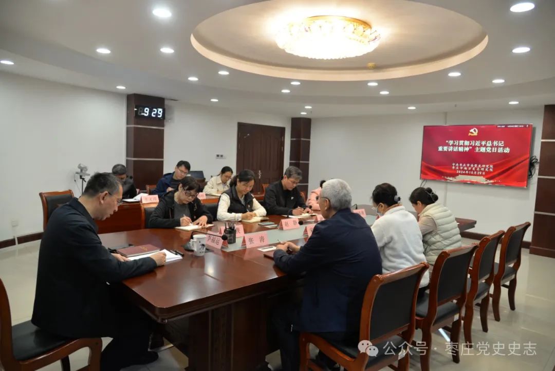 ????10月29日上午,市委黨史研究院組織開展“學(xué)習(xí)貫徹習(xí)近平總書記重要講話精神”主題黨日活動,集中學(xué)習(xí)了習(xí)近平總書記在慶祝中華人民共和國成立75周年招待會上的重要講話,在國家勛章和國家榮譽稱號頒授儀式上的重要講話,在慶祝全國人民代表大會成立70周年大會上的重要講話以及在慶祝中國人民政治協(xié)商會議成立75周年大會上的重要講話。同時,傳達(dá)了《關(guān)于公示2023年度市委組織部代市委管理黨費和市委市直機關(guān)工委管理黨費收支情況的通知》,兩位年輕同志圍繞本次主題黨日主題開展了交流研討。