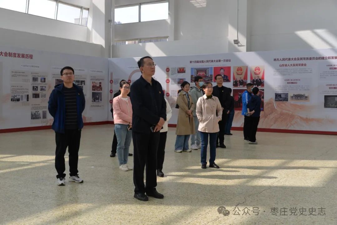 ????學(xué)習(xí)結(jié)束后,市委黨史研究院組織干部職工代表參觀棗莊市慶祝人民代表大會制度建立70周年主題展。主題展通過思想領(lǐng)航、光輝歷程、實踐成果、代表風(fēng)采等篇章,圖文并茂回顧了黨領(lǐng)導(dǎo)人民探索建立發(fā)展人民代表大會制度的光輝歷程,反映了我市人大及其常委會踐行全過程人民民主重大理念的生動實踐。參觀結(jié)束后,大家紛紛表示,將深入學(xué)習(xí)貫徹黨的二十大精神和習(xí)近平總書記關(guān)于堅持和完善人民代表大會制度的重要思想,進(jìn)一步增強工作責(zé)任感和使命感,為棗莊經(jīng)濟社會高質(zhì)量發(fā)展作出貢獻(xiàn)。