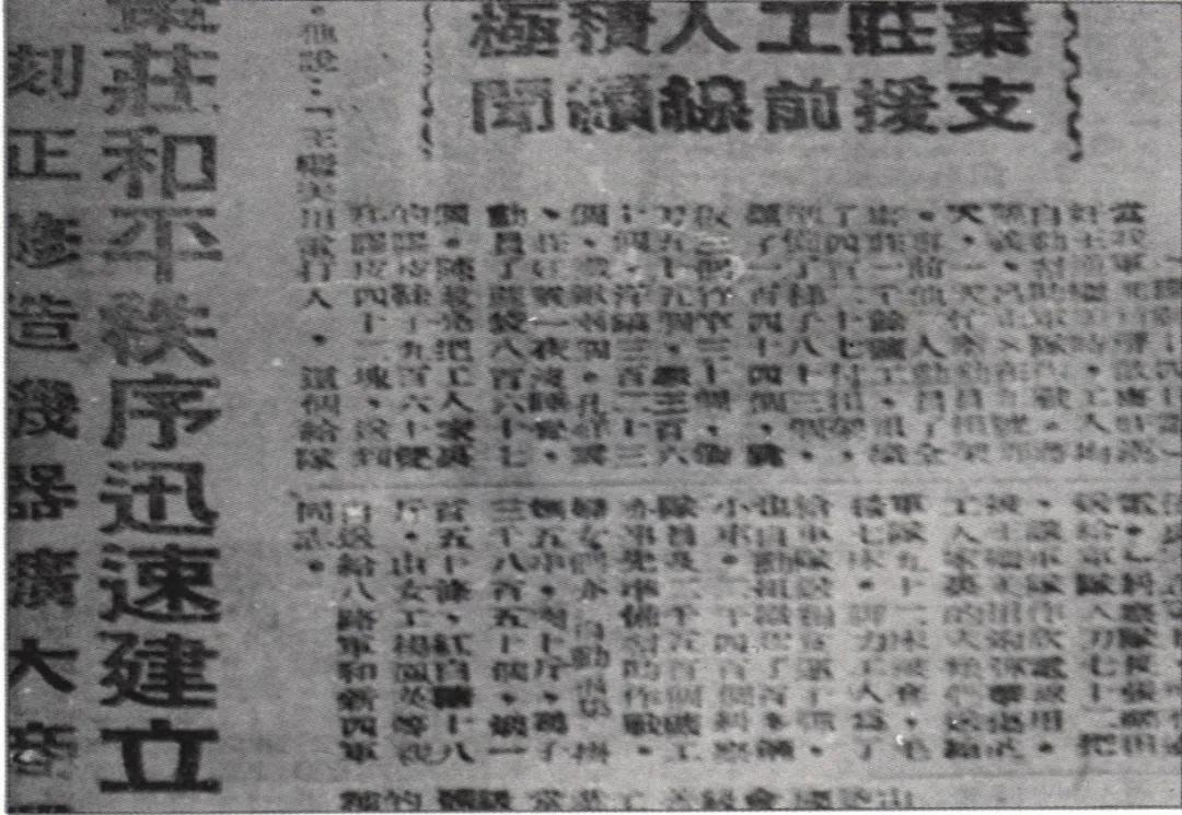 ?????????????????????????????????????????????????????????????????? 報紙關(guān)于棗莊工人積極支援前線的報導(dǎo)
