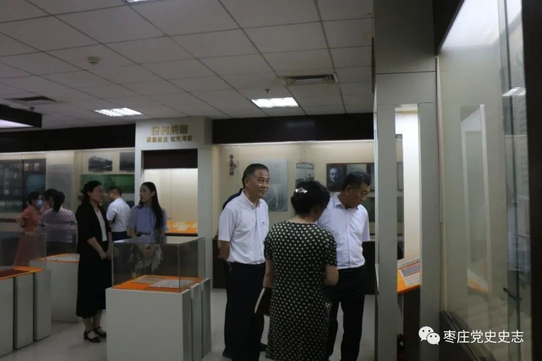 授牌儀式上,張思春、周建共同揭幕,為基地授予“棗莊市黨史教育基地”牌匾?!皺n案傳承?紅色基因”系列展是市檔案館依托館藏檔案優(yōu)勢,深入挖掘利用紅色黨史檔案資源,充分發(fā)揮愛國主義教育基地、中小學(xué)檔案教育社會實踐基地、新時代文明實踐基地功能,形成了“一館四廳”的特色黨史教育格局,打造的集黨史教育、愛國主義教育、紅色文化教育于一體的黨史教育基地。近年來,通過“檔案館開放日”、舉辦黨史專題教育報告、打造大學(xué)生研學(xué)基地等系列活動,吸引近3萬名機(jī)關(guān)黨員干部、學(xué)生、市民走進(jìn)檔案館,學(xué)習(xí)黨史,接受紅色革命精神洗禮,產(chǎn)生了廣泛影響,受到了一致好評。 最后,市委黨史研究院和市檔案館全體人員共同參觀了市檔案館珍貴檔案展廳。