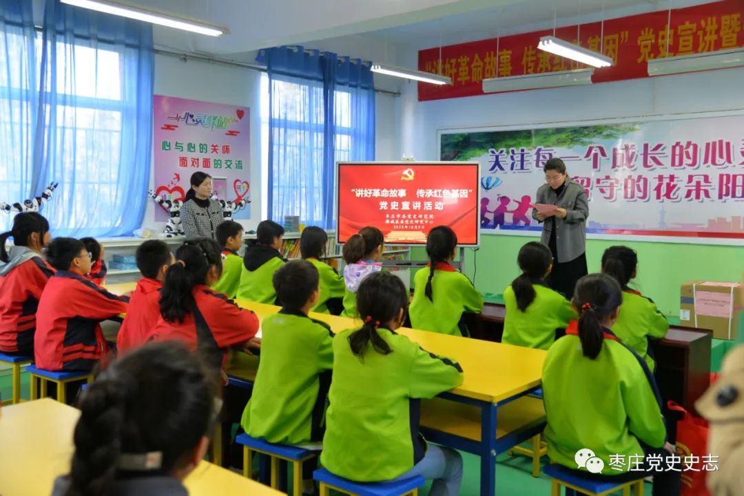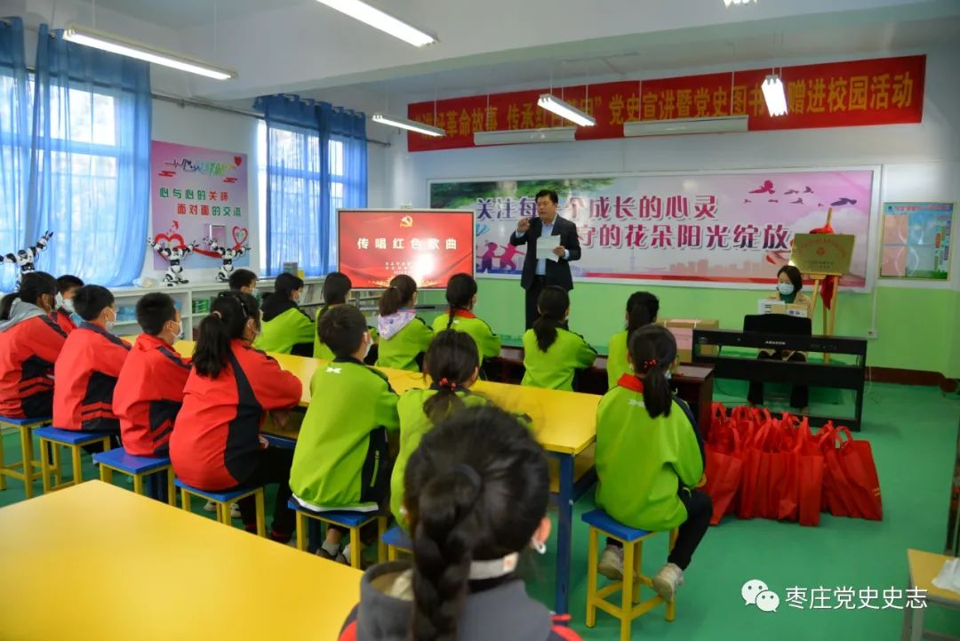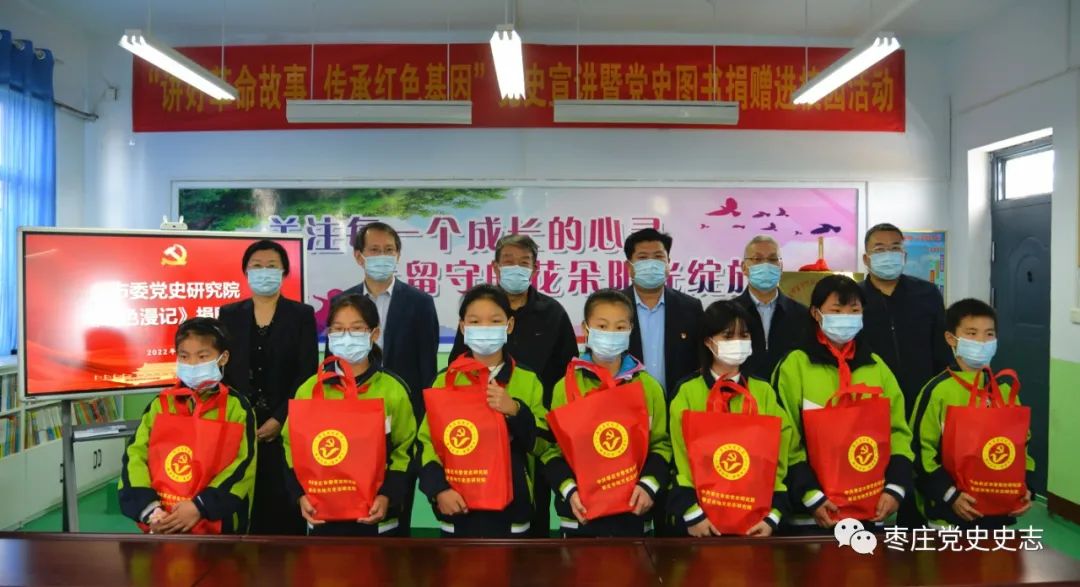 為深化拓展黨史學(xué)習(xí)教育成果,扎實(shí)開(kāi)展黨史“七進(jìn)”活動(dòng),促進(jìn)地方黨史成果轉(zhuǎn)化和發(fā)揮黨史資政育人作用,引領(lǐng)廣大青少年學(xué)生學(xué)黨史、感黨恩、聽(tīng)黨話、跟黨走,傳承紅色基因,厚植愛(ài)黨愛(ài)國(guó)情懷,以昂揚(yáng)的姿態(tài)迎接黨的二十大勝利召開(kāi)。10月9日,棗莊市委黨史研究院聯(lián)合薛城區(qū)委黨史研究中心、棗莊市政協(xié)經(jīng)濟(jì)委赴薛城區(qū)陶莊鎮(zhèn)奚仲小學(xué)開(kāi)展“講好革命故事?傳承紅色基因”黨史宣講暨黨史圖書(shū)捐贈(zèng)進(jìn)校園活動(dòng)。