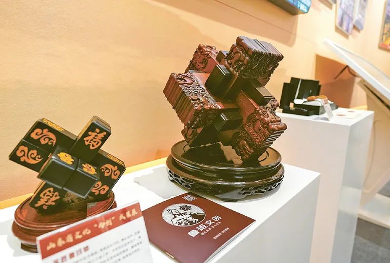 魯班鎖是“山東手造”的一個(gè)代表作,看似簡單卻凝結(jié)著不平凡的智慧,是中國古建筑中榫卯結(jié)構(gòu)的生動(dòng)展現(xiàn)。圖為2023年11月27日,魯班鎖亮相山東省文化“兩創(chuàng)”成果展。山東省委宣傳部供圖