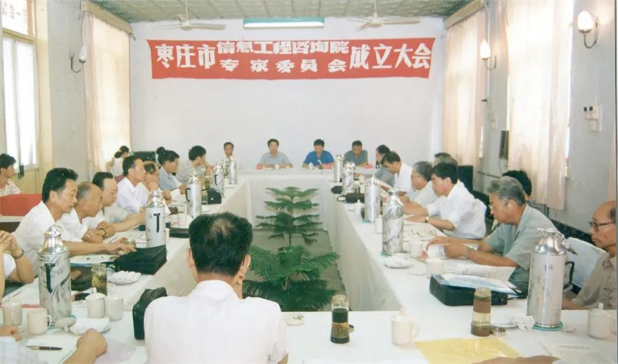 1996年8月30日,棗莊市信息工程咨詢?cè)簩<椅瘑T會(huì)成立大會(huì)現(xiàn)場(chǎng)