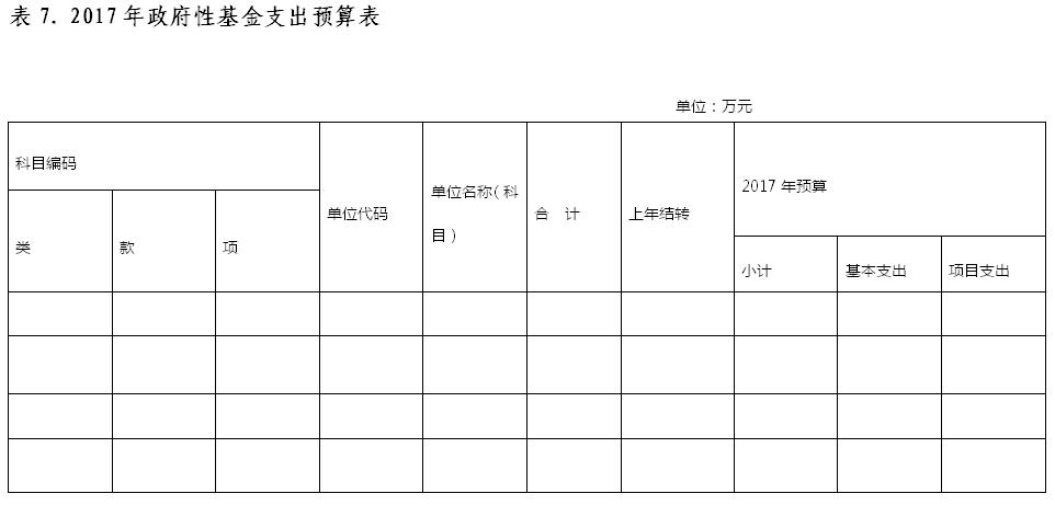 2017年政府性基金支出預(yù)算為0萬(wàn)元,具體情況如下: