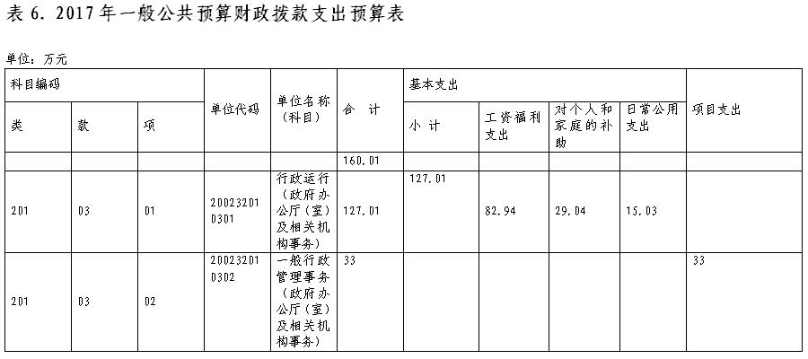 2017年當(dāng)年一般公共預(yù)算財(cái)政撥款支出預(yù)算為160.01萬(wàn)元,具體情況如下: