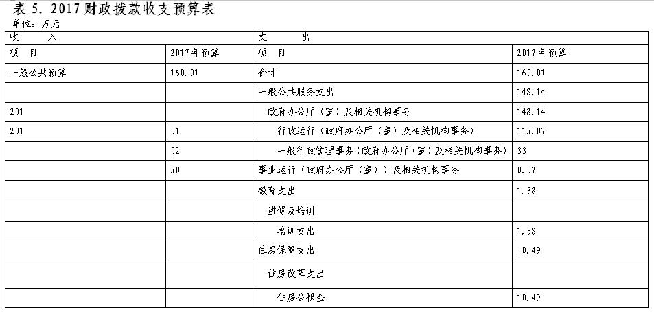 2017年財(cái)政撥款支出預(yù)算為160.01萬(wàn)元,具體情況如下: