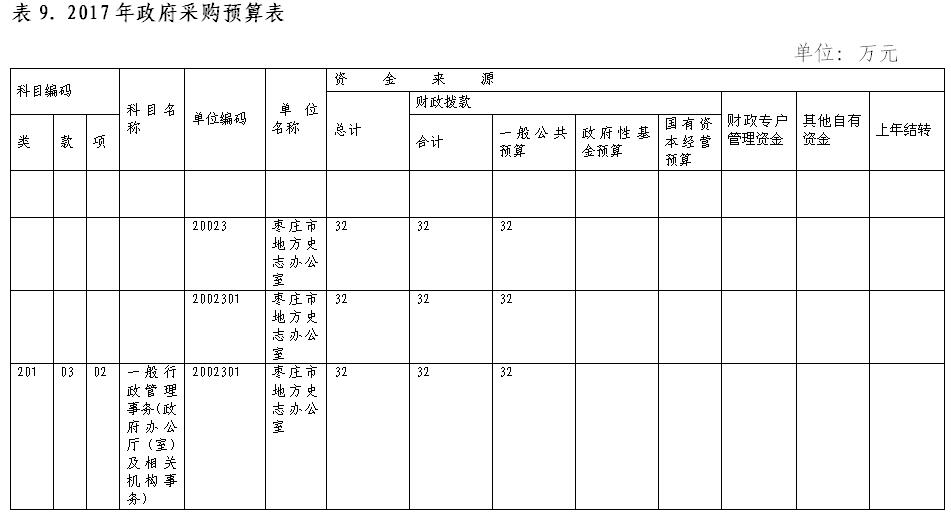 2017年政府采購(gòu)預(yù)算32萬(wàn)元,其中:財(cái)政撥款安排32萬(wàn)元,為史志年鑒印刷費(fèi)用及市情網(wǎng)維護(hù)。